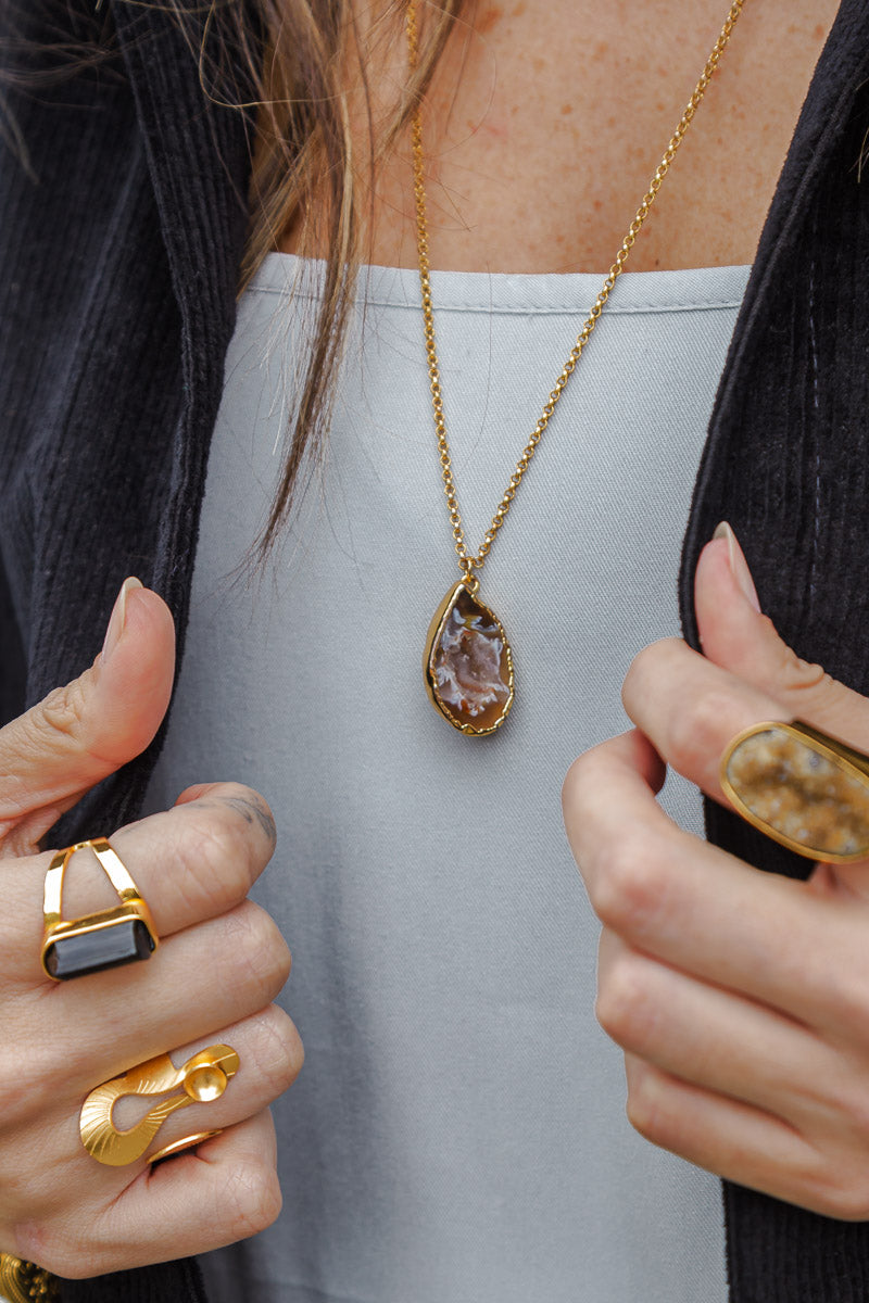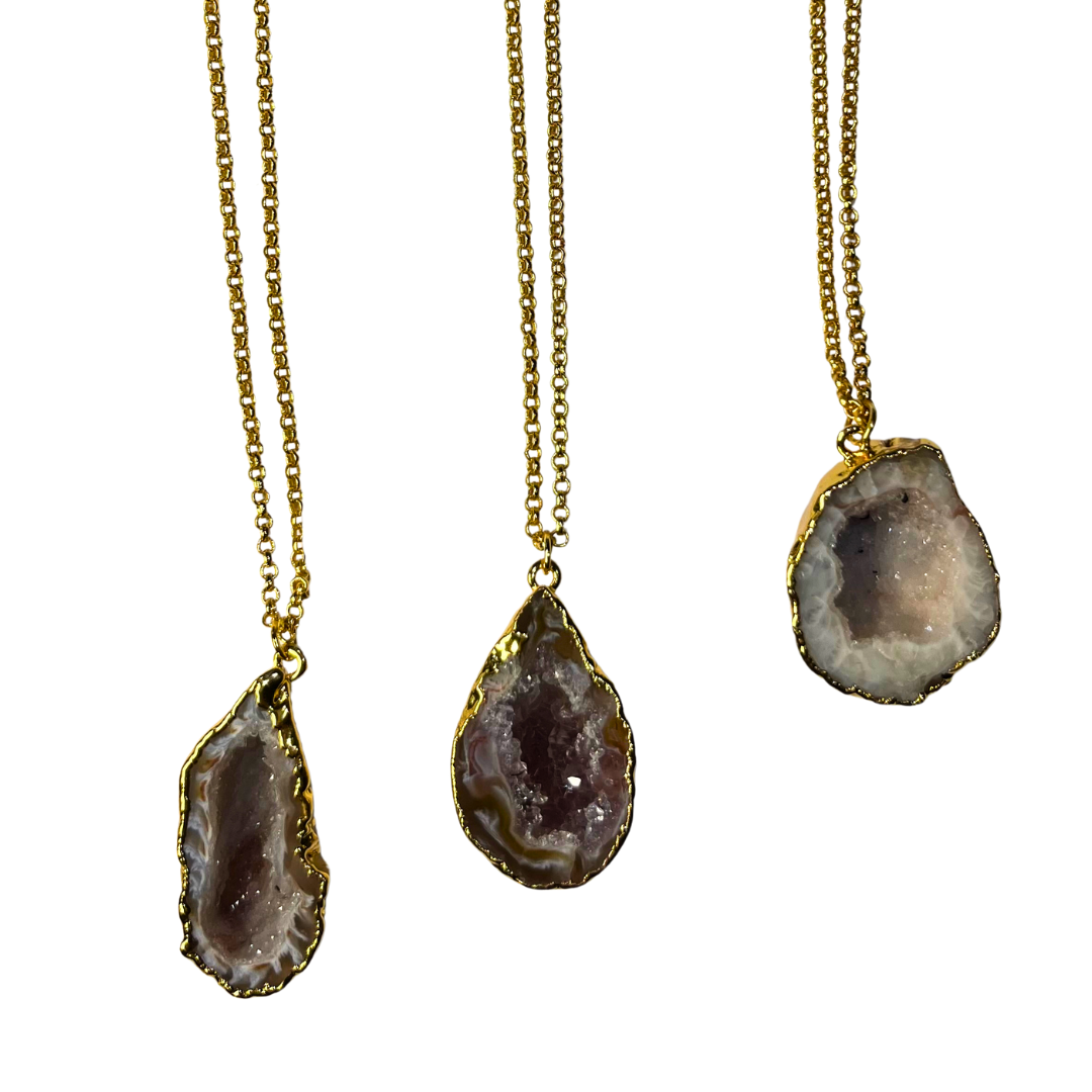 Lleva contigo este lindo Collar de Geoda de Ágata en forma de cueva,  en momentos donde necesites sentirte equilibrada emocionalmente.