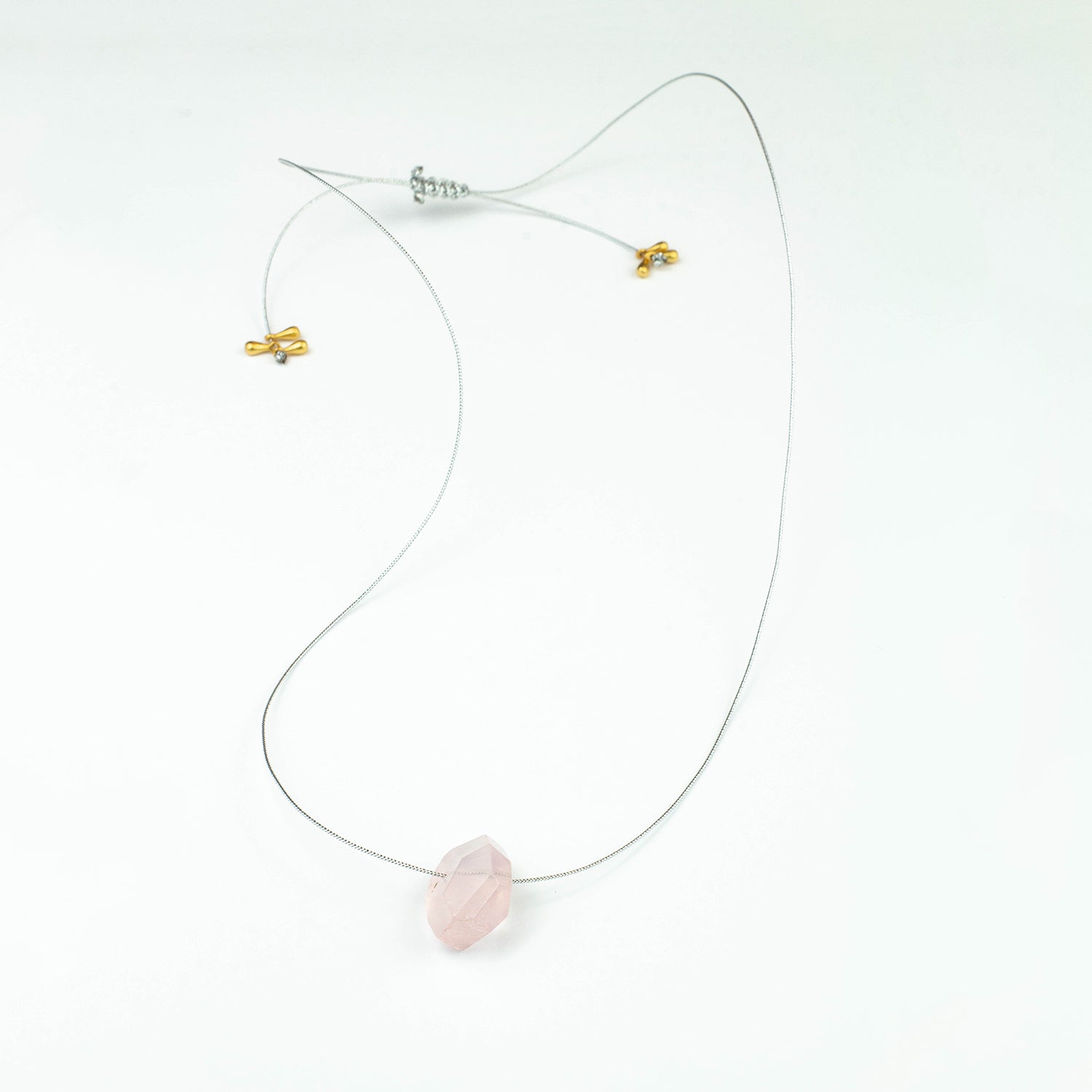 Choker de Hilo Plata de Cuarzo Rosa ajustable.