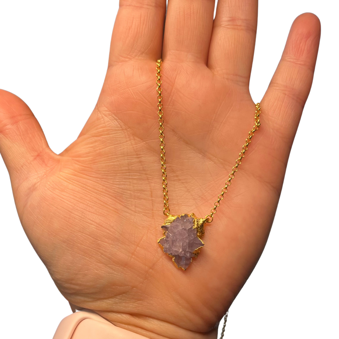 La rosa de drusa de amatista es la parte final de una estalactita, la cual crece en cuevas en forma de gota, por eso es tan especial.