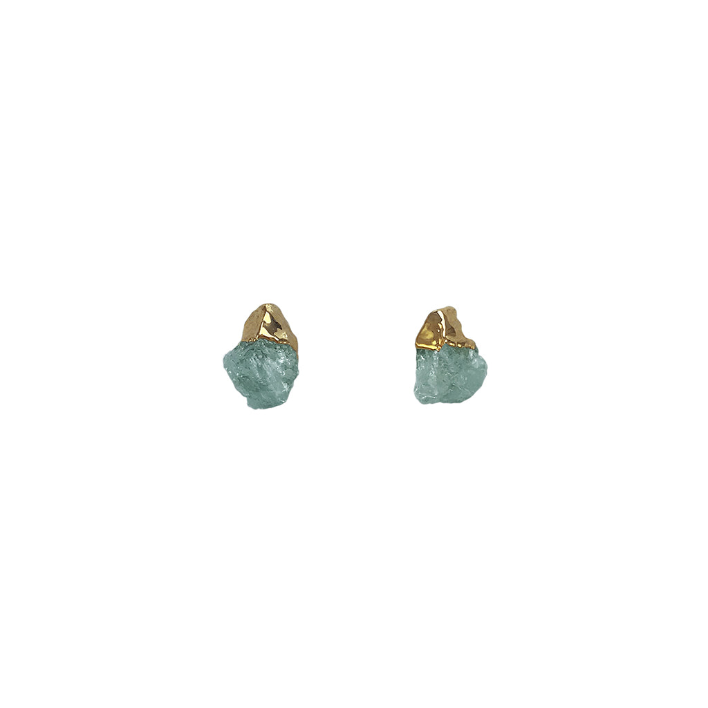 Aretes de aguamarina en bruto hecho a mano con baño de oro de 24k .